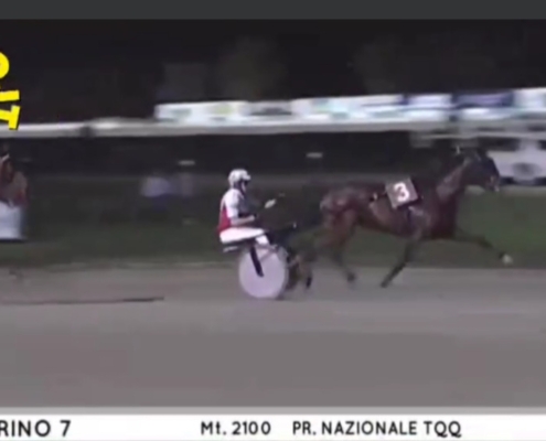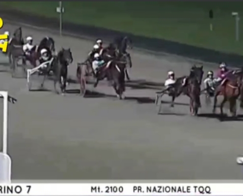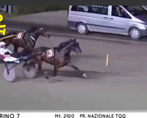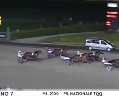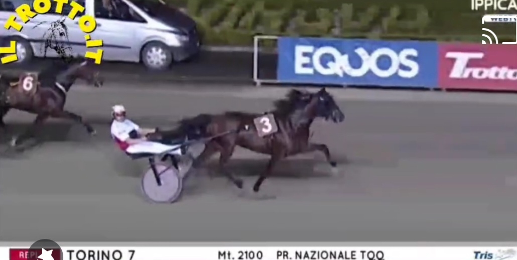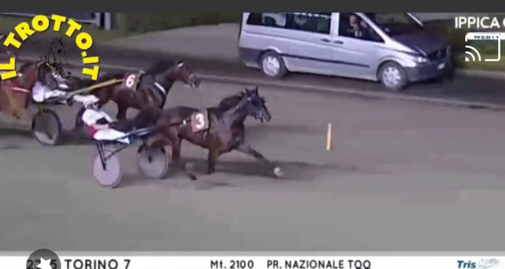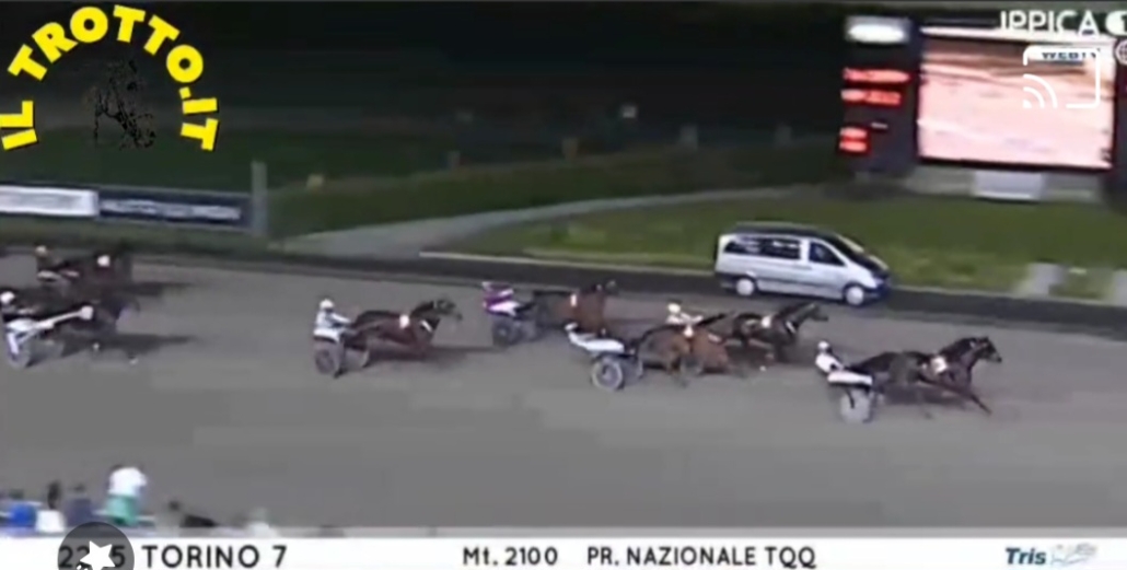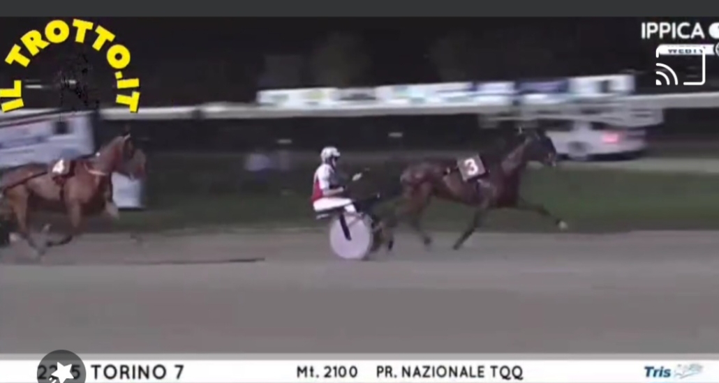 Turijn, 8 juni 2024 Feldenkrais Pal wint de Premio Nazionale Trotto Turino in 1.12.6 over 2.100 meter met Robin Bakker.
