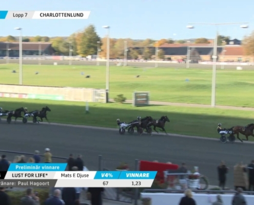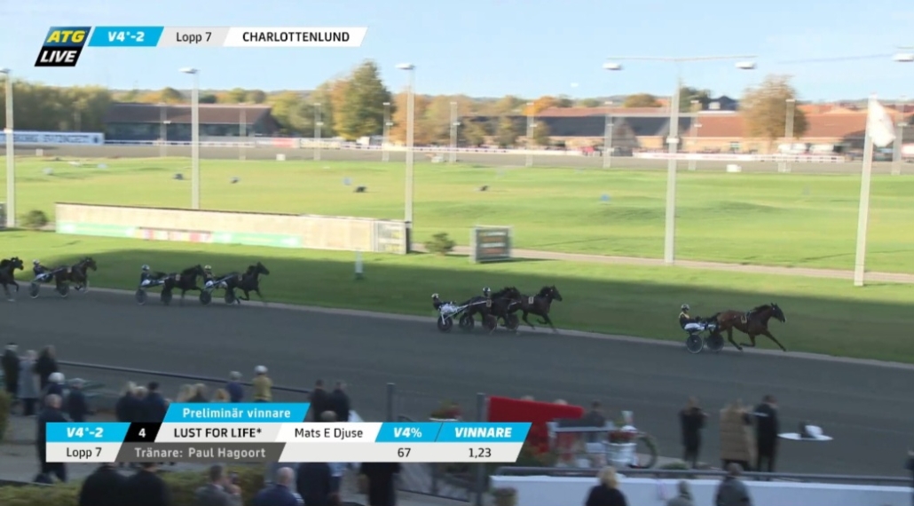 Charlottelund, 12 oktober 2025 Lust For Live wint de Yesbox Dansk Trav Kriterium 20 (Gr.I) in 1.12.9 over 2.500 meter met Mats E.Djuse.