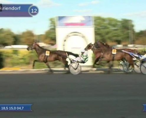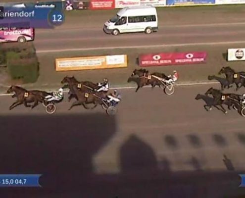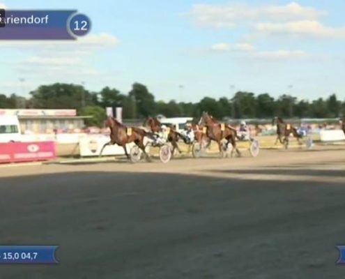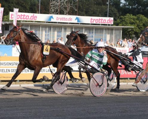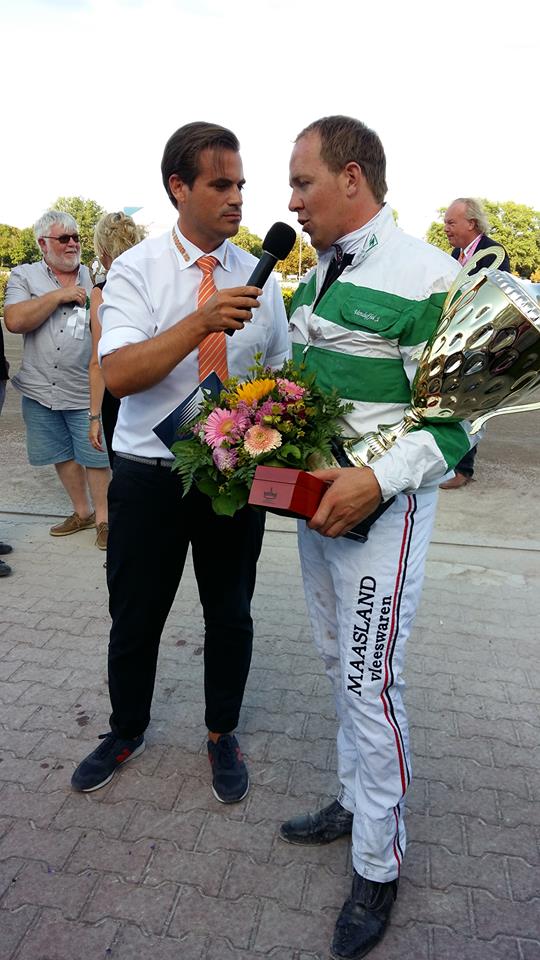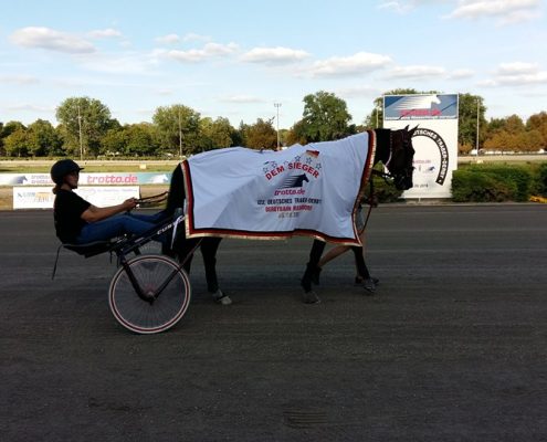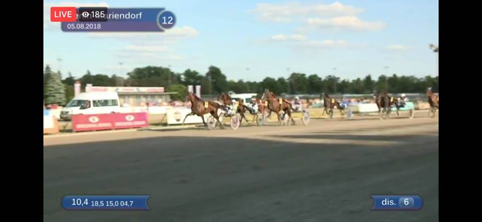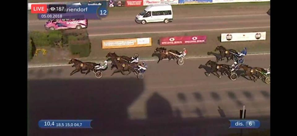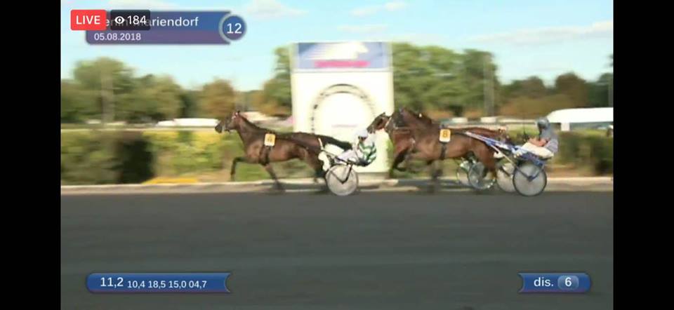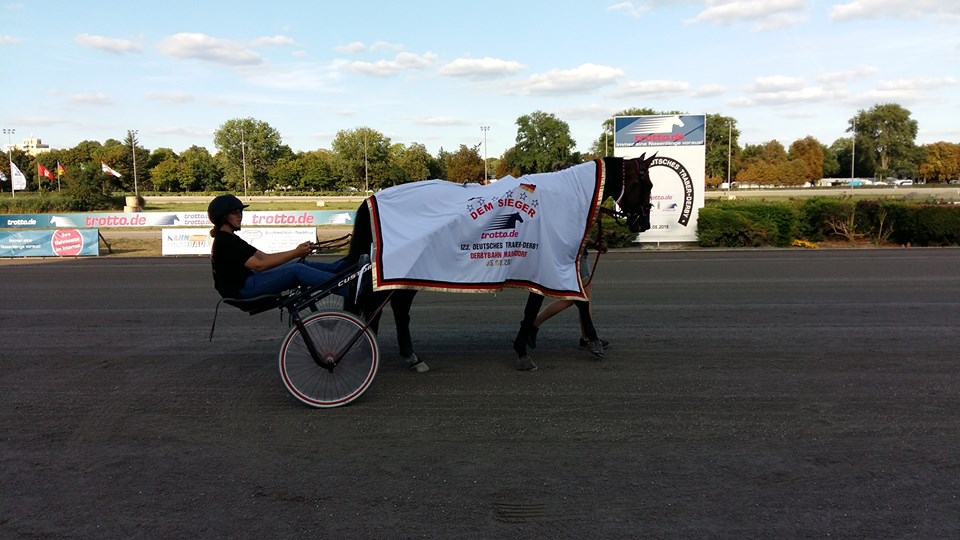 Berlijn, 5 augustus 2018 Mr.F.Daag wint de 123e Deutsches Traber Derby 2018 in 1.12.3 over 1.900 meter met Robin Bakker.