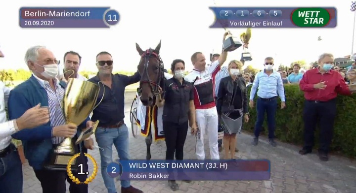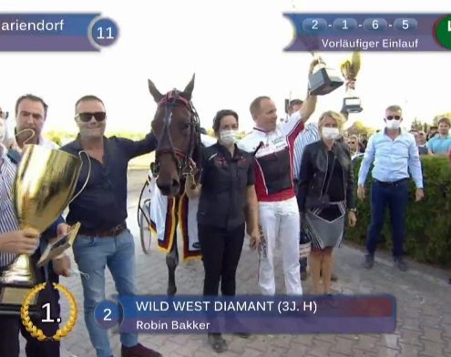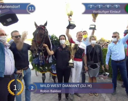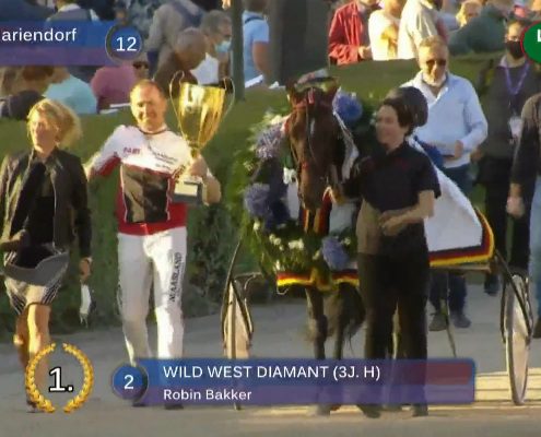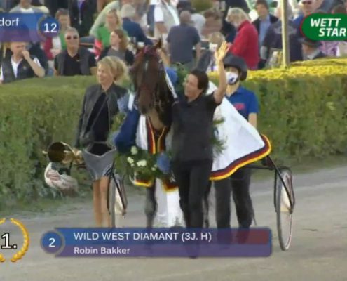 Wild West Diamant wint de 125e Deutsches Traber Derby