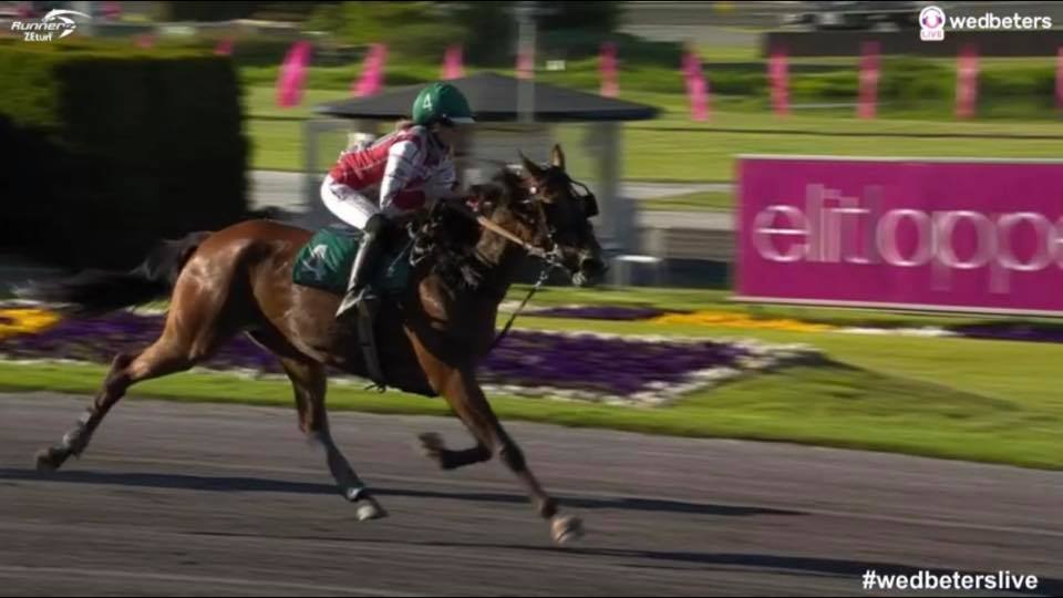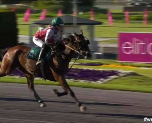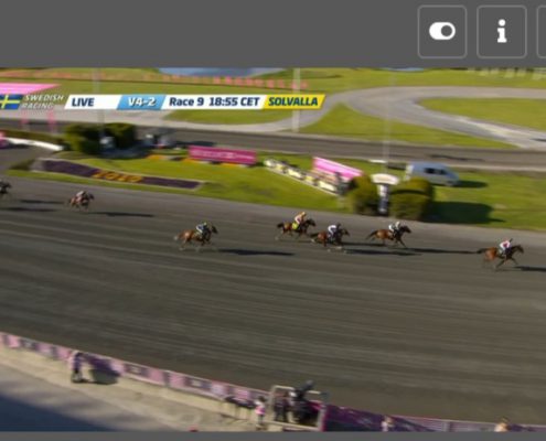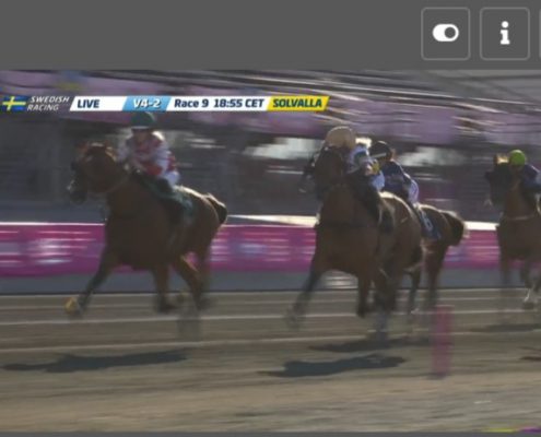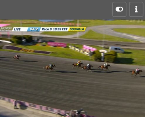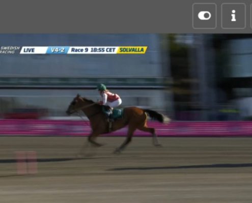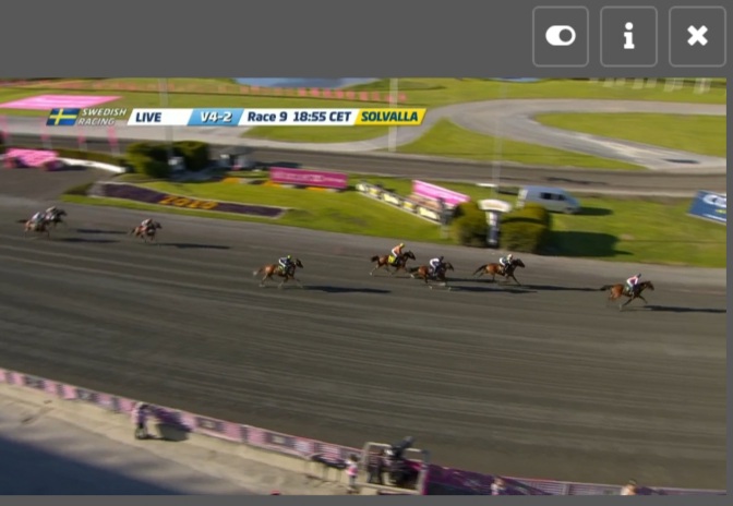 Jagersro, 31 mei 2020 Hambo Transs R wint de Centerpartiet – Montéeliten (Gr II Int) in 1.10.5 over 1.640 meter met Robin Bakker.