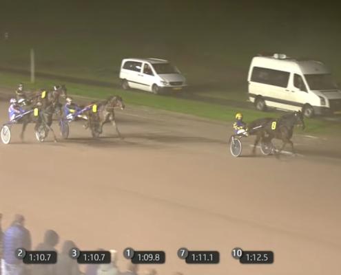 Wolvega, 14 november 2025 Peggy Boko wint de Newport Breeding TCT Filly Derby (Gr.II) in 1.13.7 over 2.100 meter met Robin Bakker.
