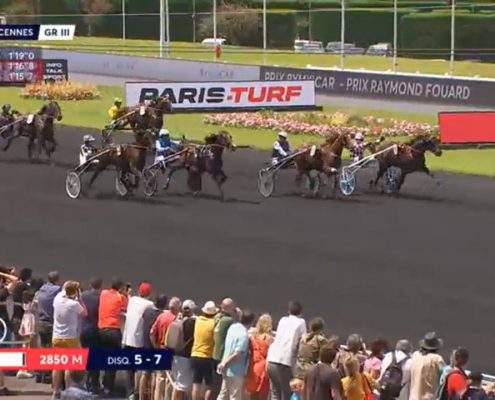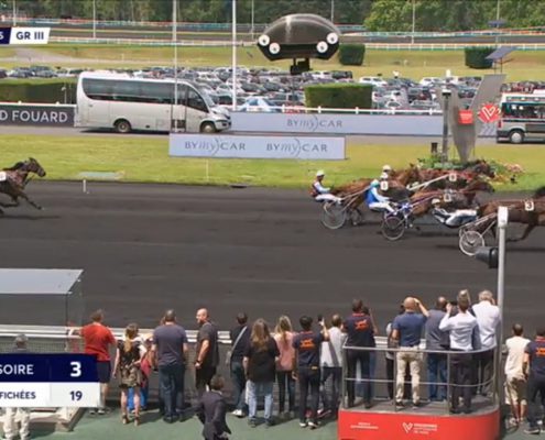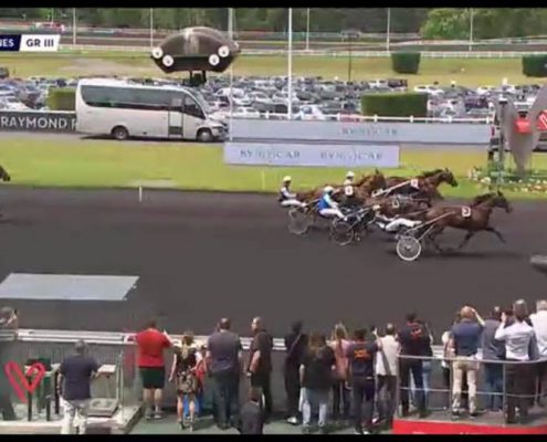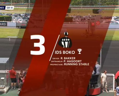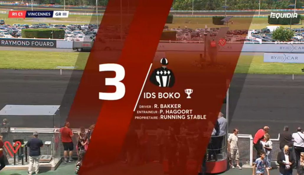 Vincennes, 13 juni 2019 Ids Boko wint de Prix Raymond Fouard in 1.14.7 over 2.850 meter met Robin Bakker.