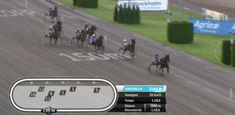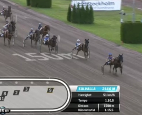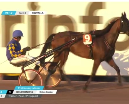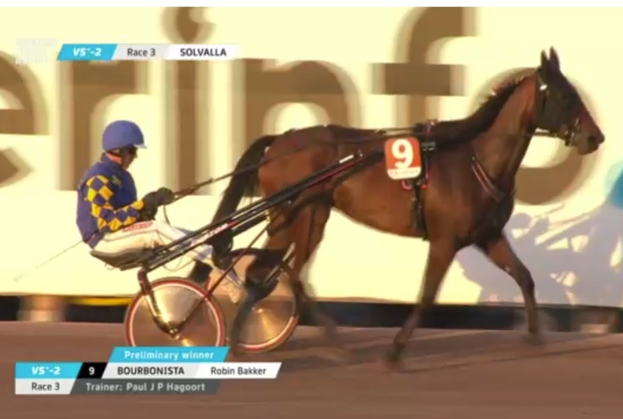 Solvalla, 28 augustus 2024 Bourbonista wint de Svensk Travsports Unghästserie – Treåringslopp Ston in 1.14.5 over 2.140 meter met Robin Bakker.