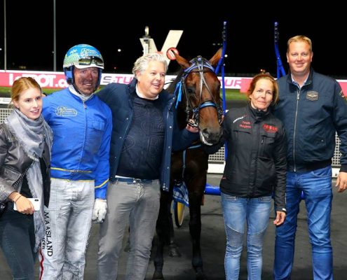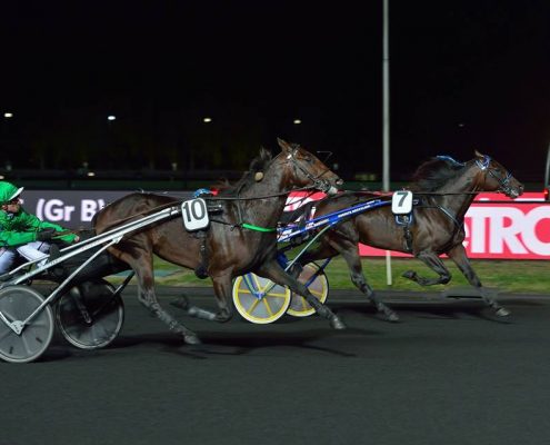 Vincennes, 25 september 2018 Broadwell wint de serie van de Grand Prix de L’U.E.T. in 1.12.1 over 2.100 meter met Robin Bakker.