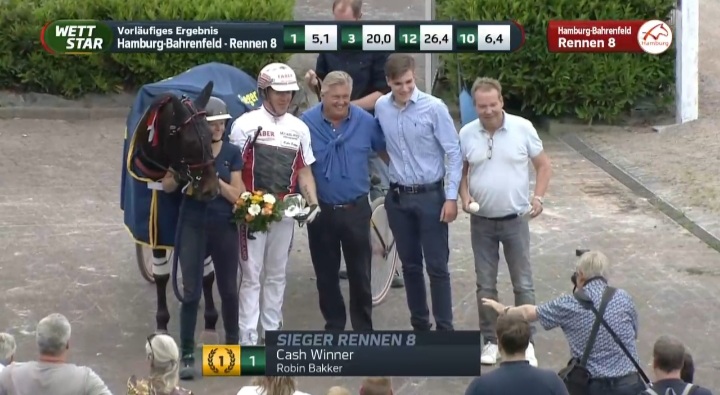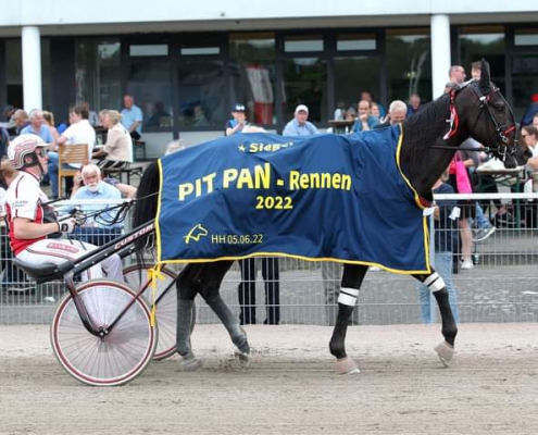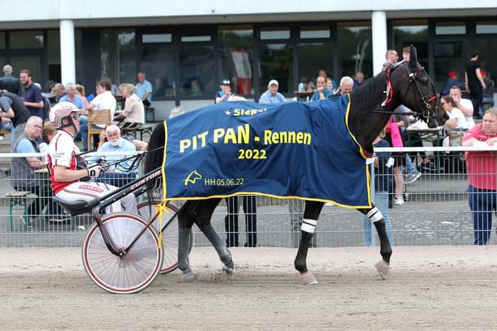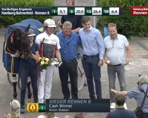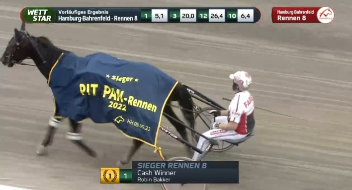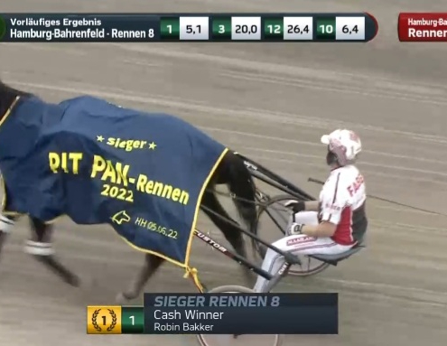 Hamburg, 5 juni 2022 Cash Winner wint de Pit Pan Rennen in 1.13.6 over 2.200 meter met Robin Bakker.