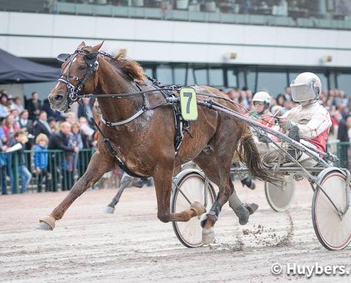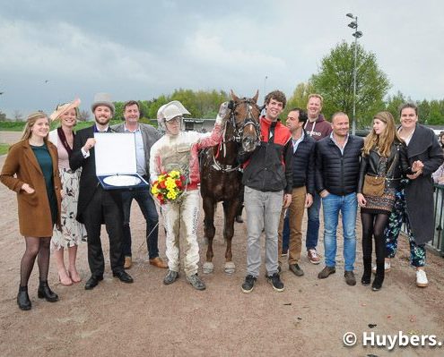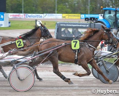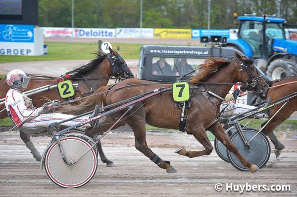 Wolvega, 28 april 2018 Coup Droit wint de Prix Universiteit Utrecht in 1.18.4 over 2.600 meter met Robin Bakker.