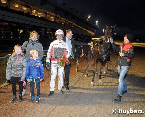 Wolvega, 2 februari 2018 Eadshot Josselyn wint de Prix Timo Nurmos in 1.15.0 over 2.100 meter met Robin Bakker.