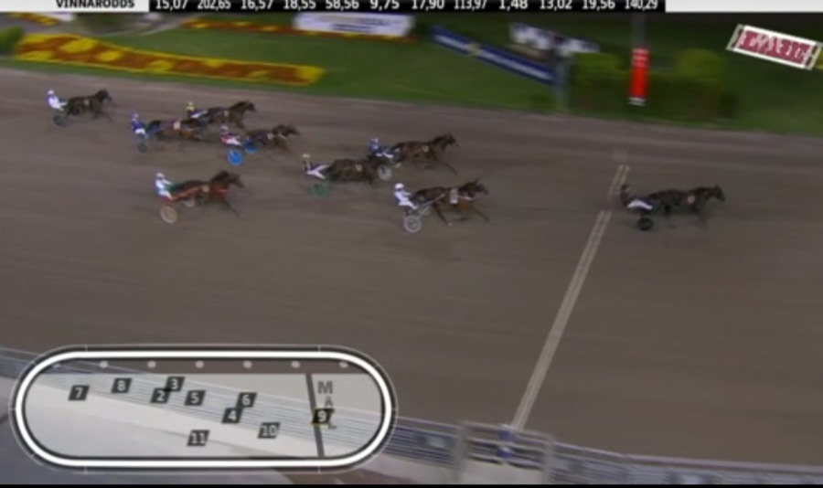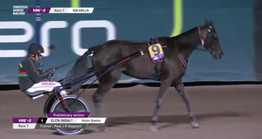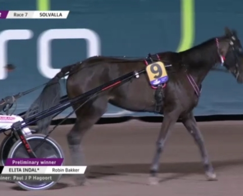 Solvalla, 28 augustus 2024 Elita Indal wint de Easy KB – Stall Courant Solvallaserien 350, Fördel Ston in 1.12.9 over 2.140 meter met Robin Bakker.
