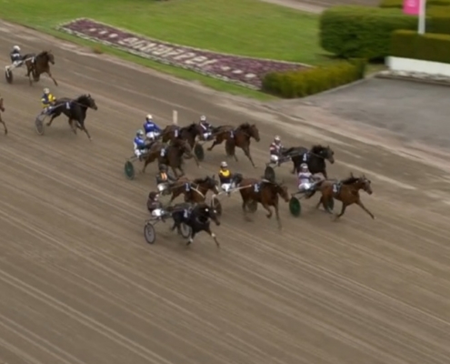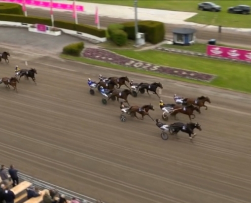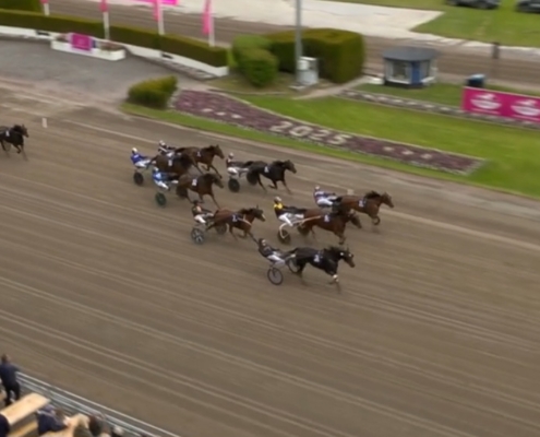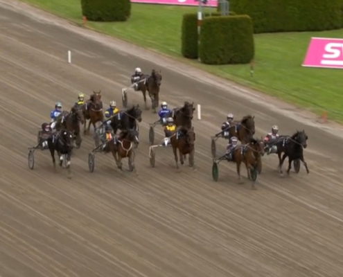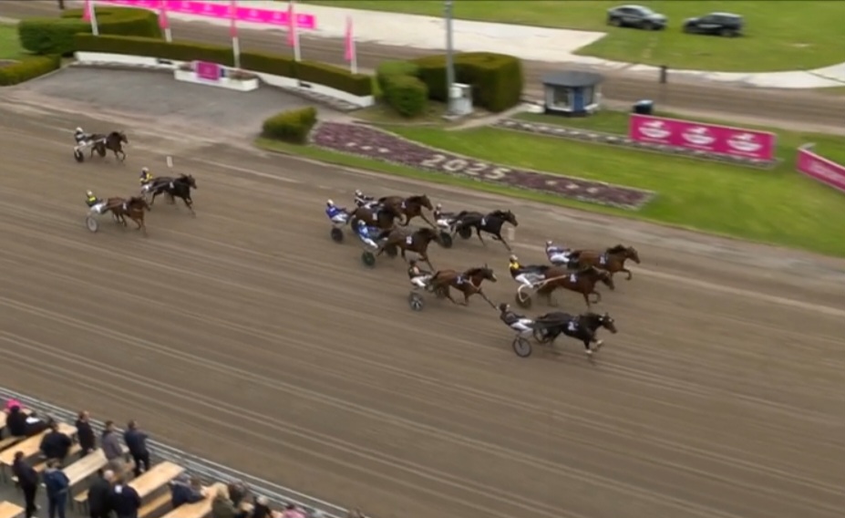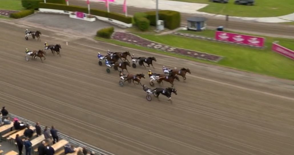 Solvalla, 23 mei 2025 Elite Indal wint de Cab Online – Stolopp in 1.13.70 over 2.140 meter met Robin Bakker.