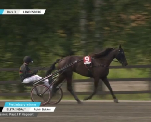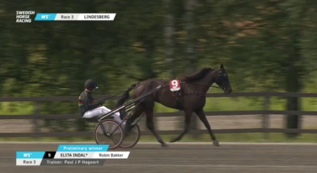 Lindesberg, 28 julin 2024 Elita Indal wint de 3e Lopp in 1.14.9 over 2.160 meter met Robin Bakker.