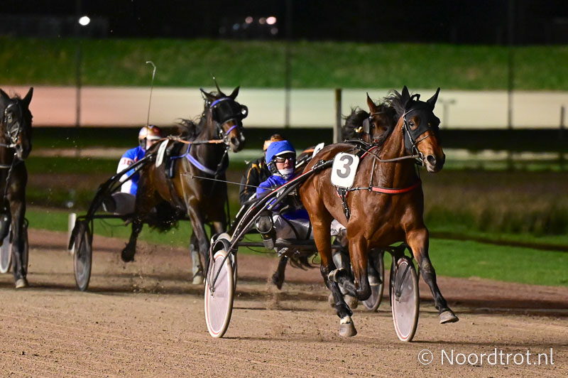 Wolvega, 1 maart 2024 Enea Font wint de Prix Yme Kuiper in 1.13.7 over 2.100 meter met Robin Bakker.