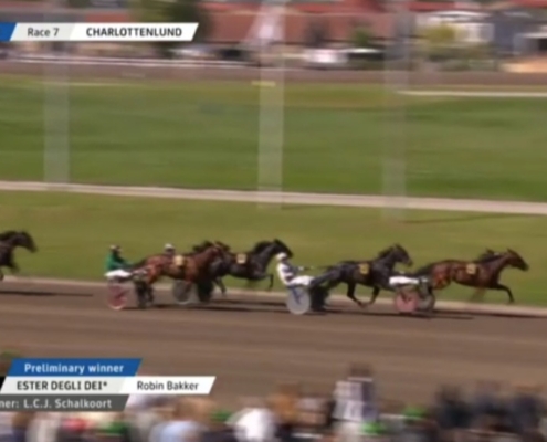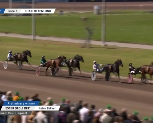Copenhagen, 12 mei 2024 Ester Degli Dei wint de Skovshoved Hotel praesenterer 4-ars Eliten in 1.12.5 over 2.000 meter met Robin Bakker.