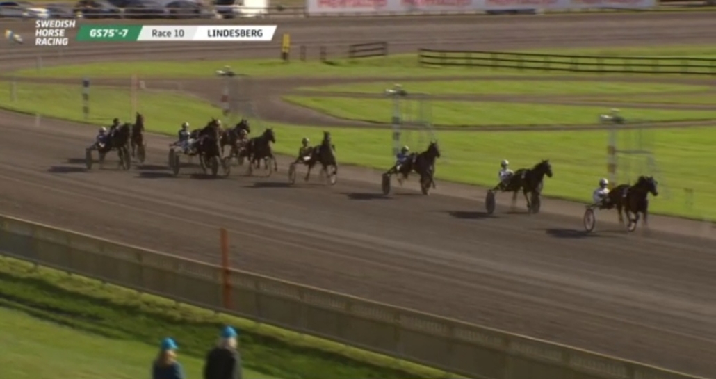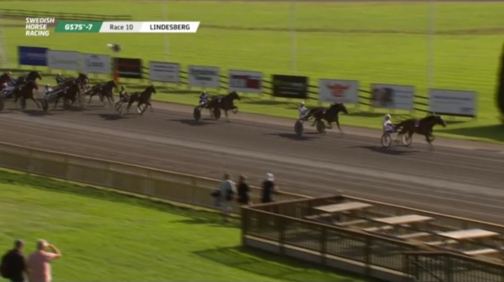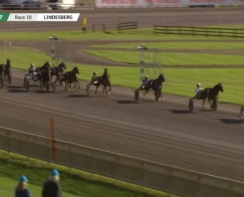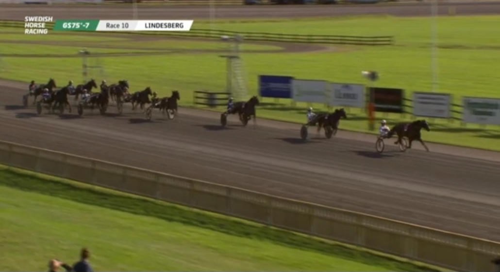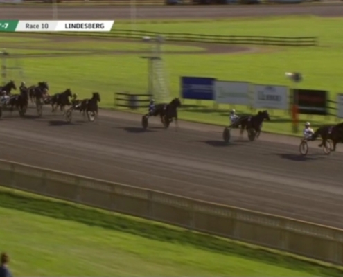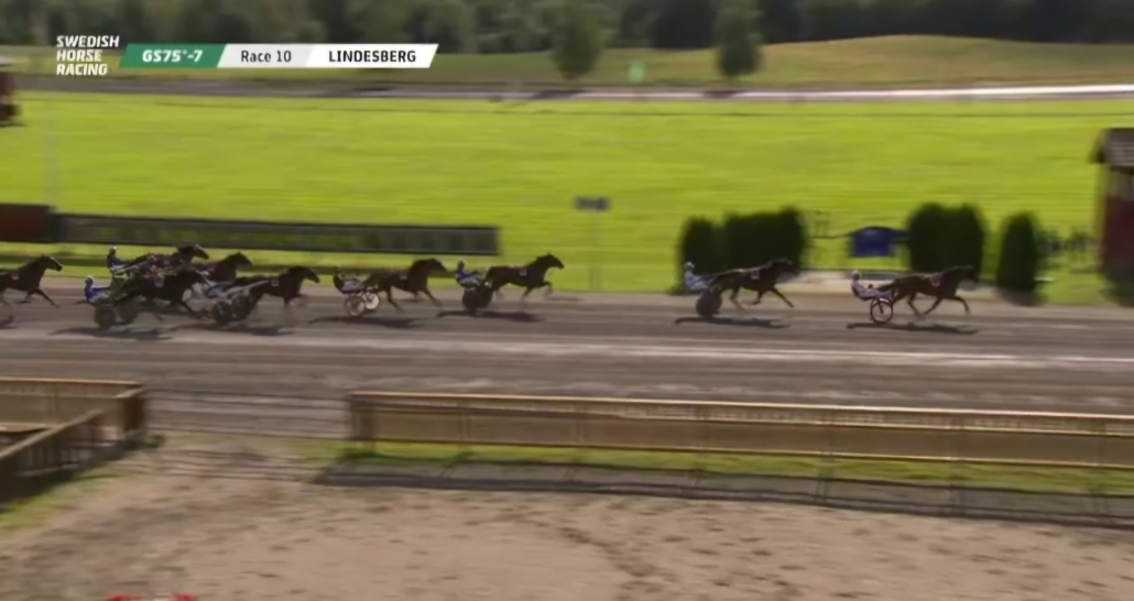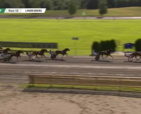 Lindesberg, 28 juli 2024 Fly Equos Jet wint de Breeders’ Crown Treåriga Hingstar/Valack in 1.13.8 over 2.140 meter met Robin Bakker.