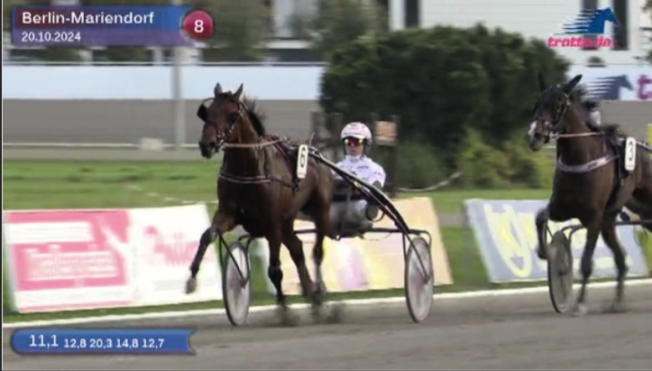 Berlijn, 20 oktober 2024 Fragolino Rosso wint de Breeders Crown voor 2 jarigen over 1.900 meter met Robin Bakker.