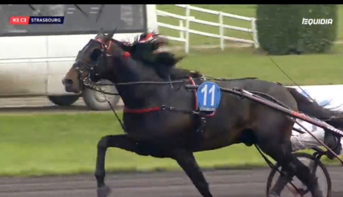 Strasbourg, 20 oktober 2019 Go Fast Desbois wint de Prix Titan in 1.18.6 over 2.875 meter met Robin Bakker.