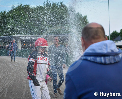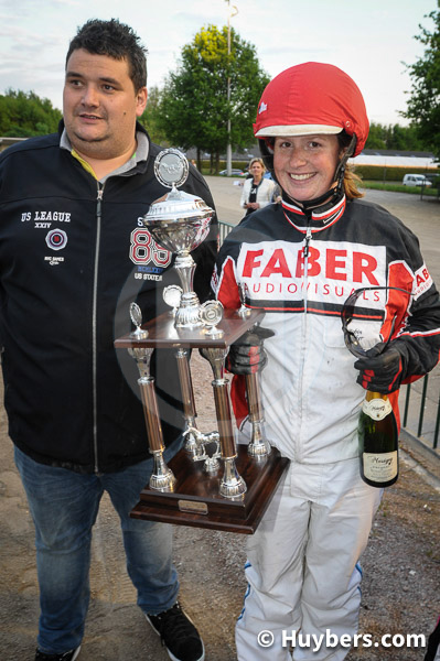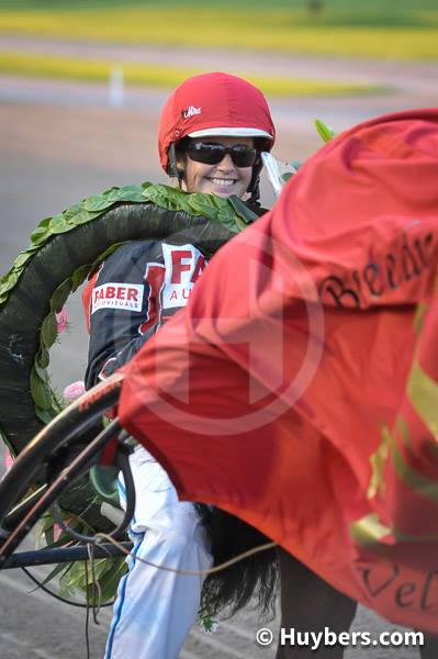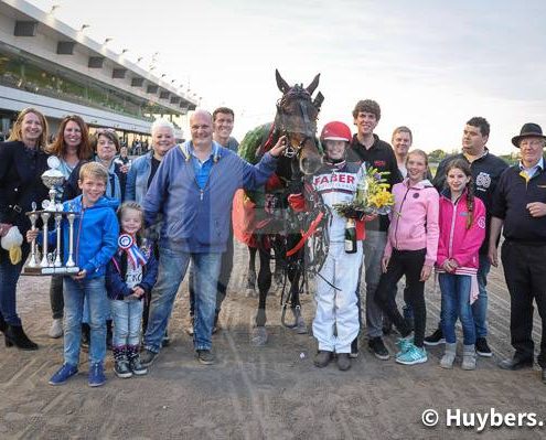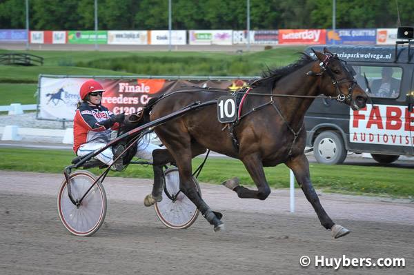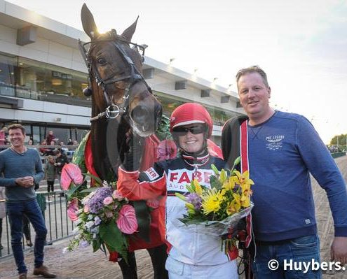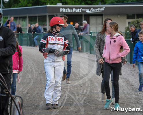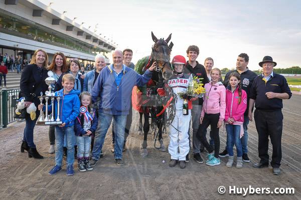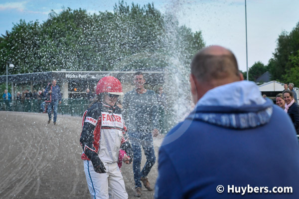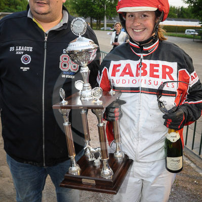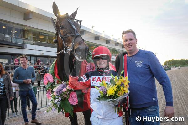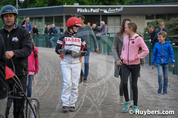 Wolvega, 20 mei 2017 Greek F Boko wint de Velten Racing Stable 2e heat (gelegenheidsrijders koers) in 1.15.3 over 2.100 meter met Kim Hagoort – Leder