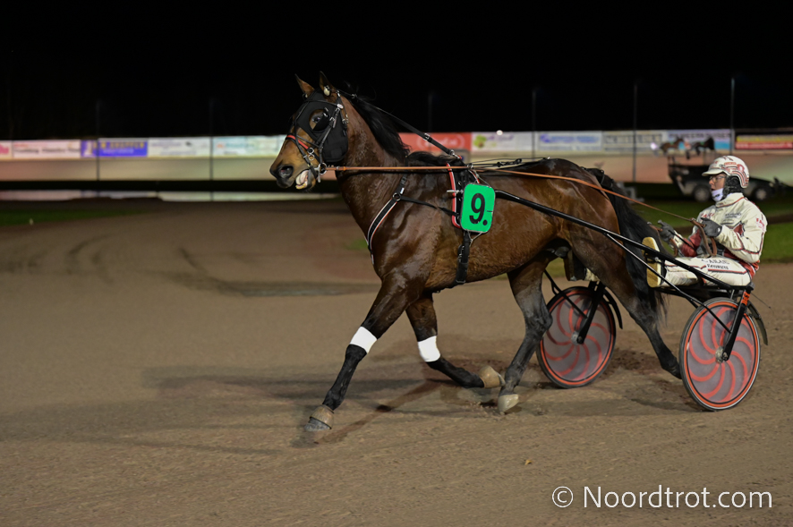 Wolvega, 23 januari 2025Z Hades de Vandel wint de Grand Prix Willem H. Geersen in 1.14.8 over 2.620 meter met Robin Bakker.