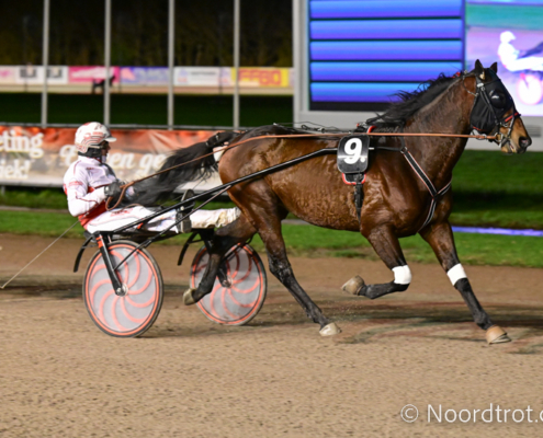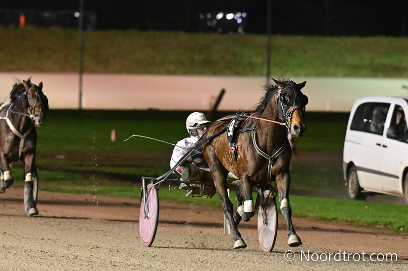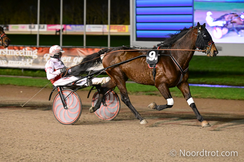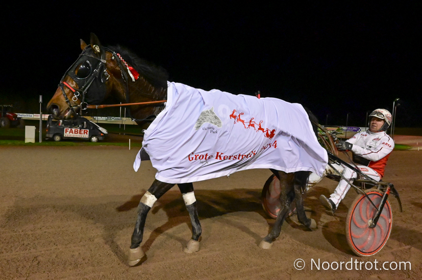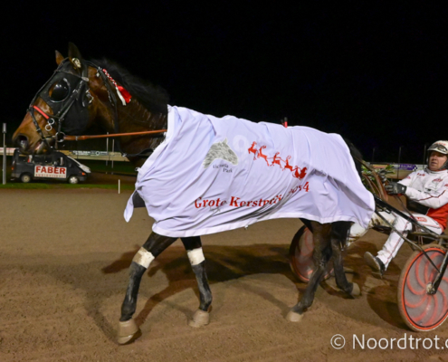 Wolvega, 20 december 2024 Hades de Vandel wint de Grote Kerstprijs 2024 in 1.14.6 over 2.620 meter met Robin Bakker.