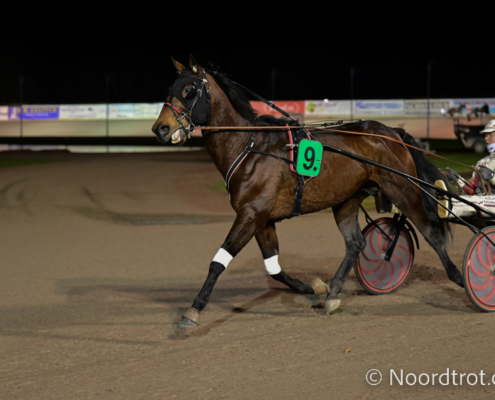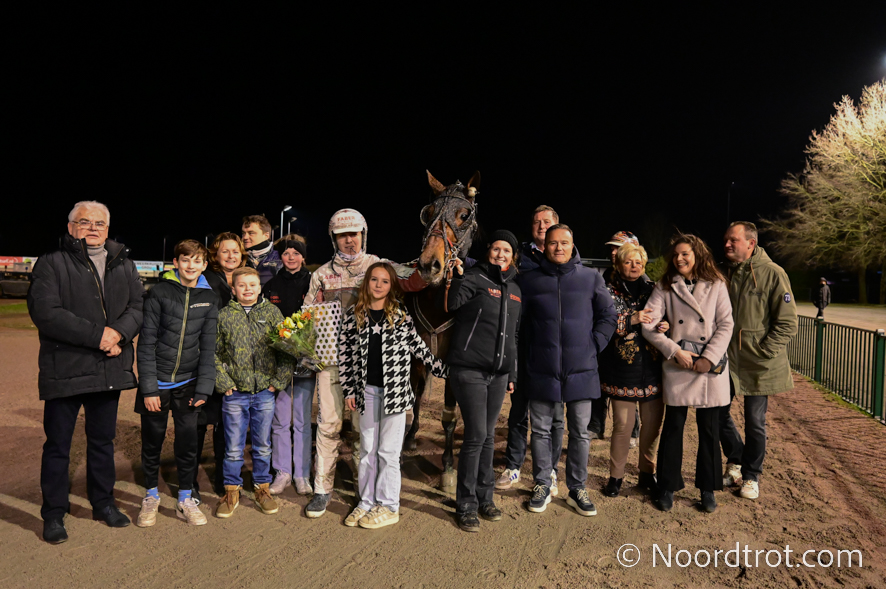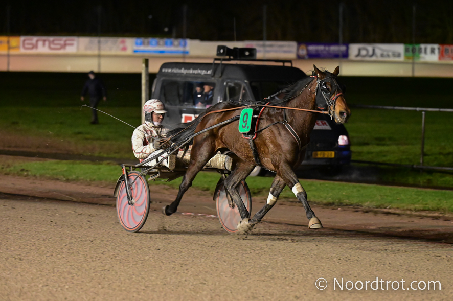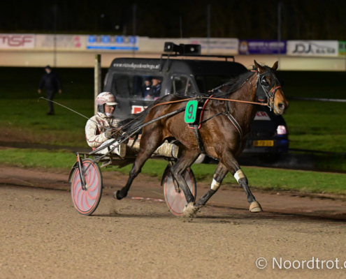 Wolvega, 22 maart 2025 Hades de Vandel wint de Grote Ondernemersprijs van Wolvega in 1.13.1 over 2.620 meter met Robin Bakker.
