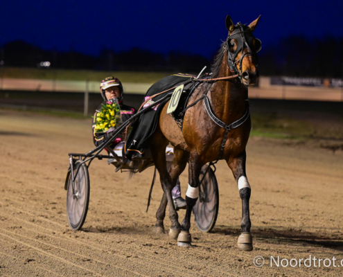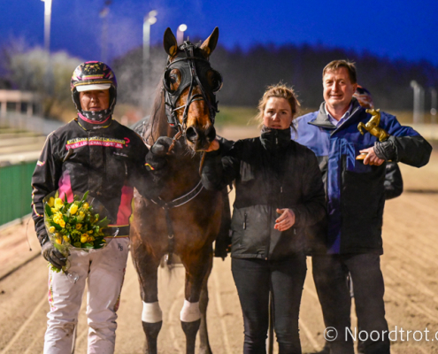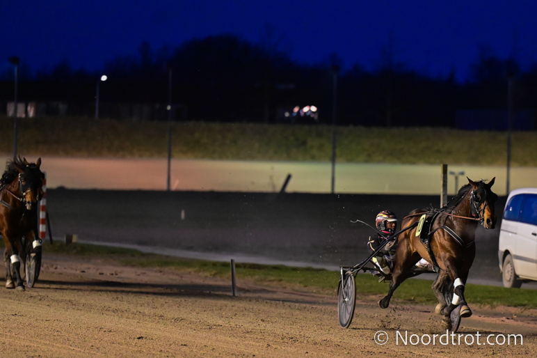 Wolvega, 14 februari 2026 Hades de Vandel wint de Prix Cheval D’Or – Het Gouden Paard in 1.15.4 over 2.620 meter met Robin Bakker.