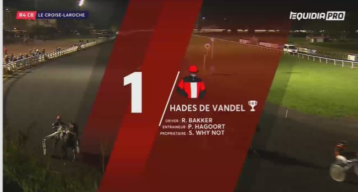 Le Croise-Laroche, 28 oktober 2019 Hades de Vandel wint de Prix de la Motte au Bois in 1.17.2 over 2.825 meter met Robin Bakker.