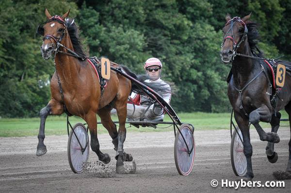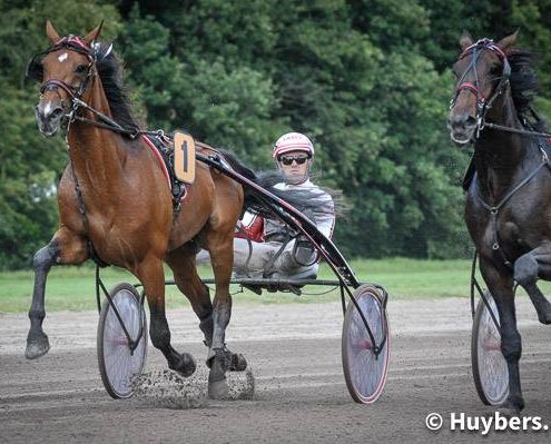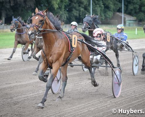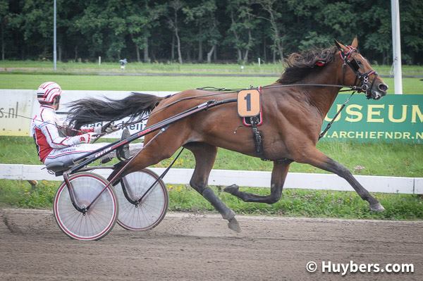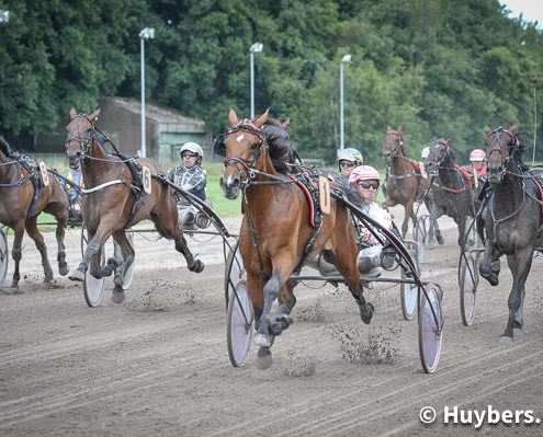 Hambo Transs R wint de Derbyselectie II in 1.18.5 over 2.000 meter met Robin Bakker.