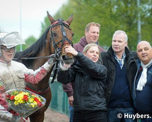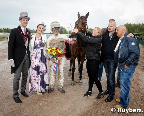 Wolvega, 28 april 2018 Hillary Queen wint de Sportspeakers.nl Trophy in 1.14.6 over 2.100 meter met Robin Bakker. Humble Hill wordt 2e met Danny Brouwer
