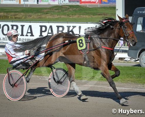 Wolvega, 10 oktober 2018 Hillary Queen wint de Victoriapark Wolvega Vierjarigen Challenge in 1.16.2 over 2.600 meter met Robin Bakker.
