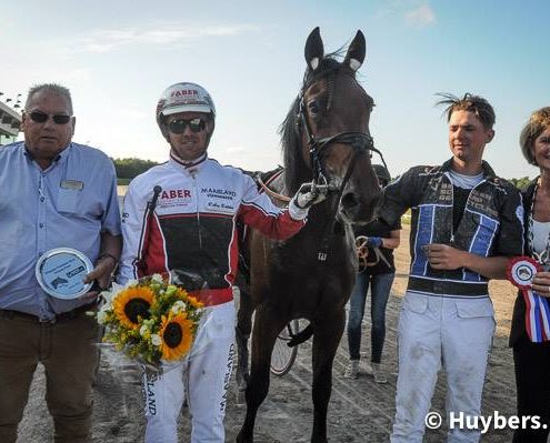 Wolvega, 13 juli 2018 Innovation Love wint de Prix Winston Sisa in 1.14.7 over 2.100 meter met Robin Bakker.