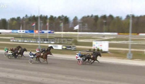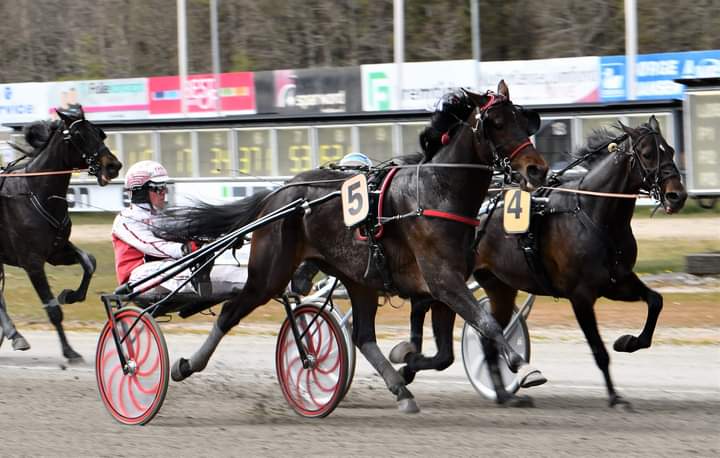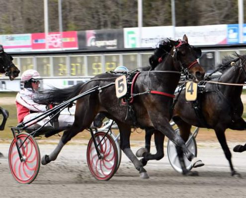 Skive, 2 mei 2021 Kilimanjaro wint de Frosty Hanovers Mindeløb 2021 in 1.13.9 over 2.060 meter met Robin Bakker.