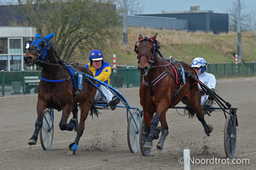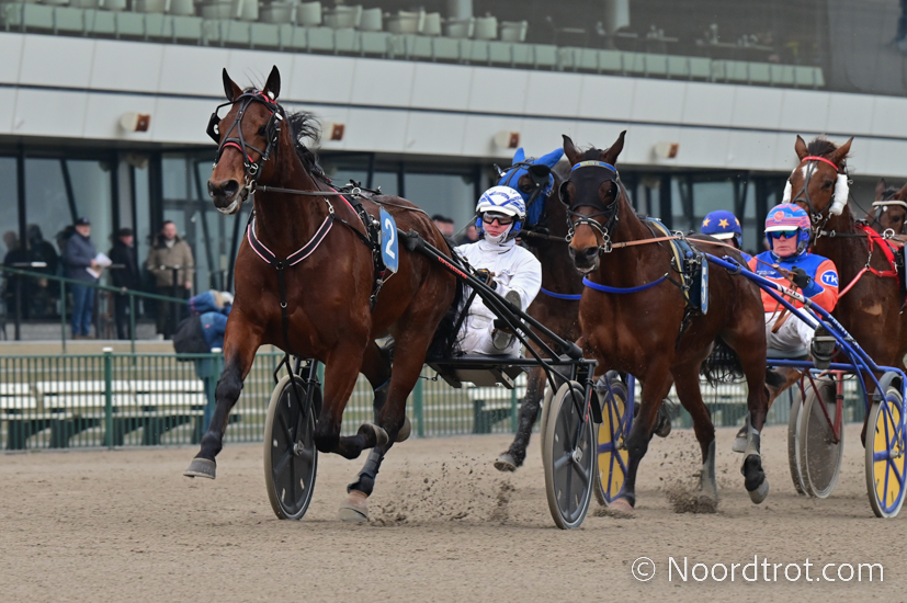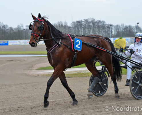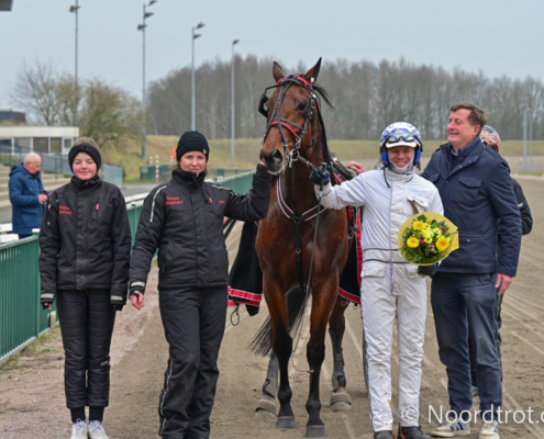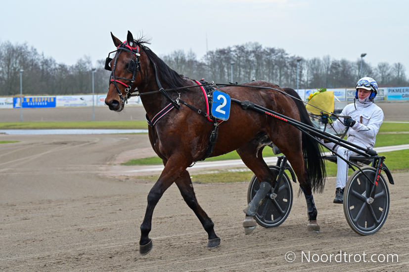 Wolvega, 8 februari 2025 Killer Rain wint de Prix ArchiefNDR.nl in 1.18 over 2.100 meter met Floris Vandenabeele.