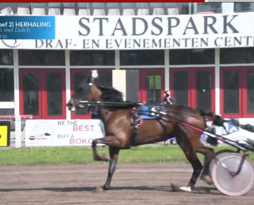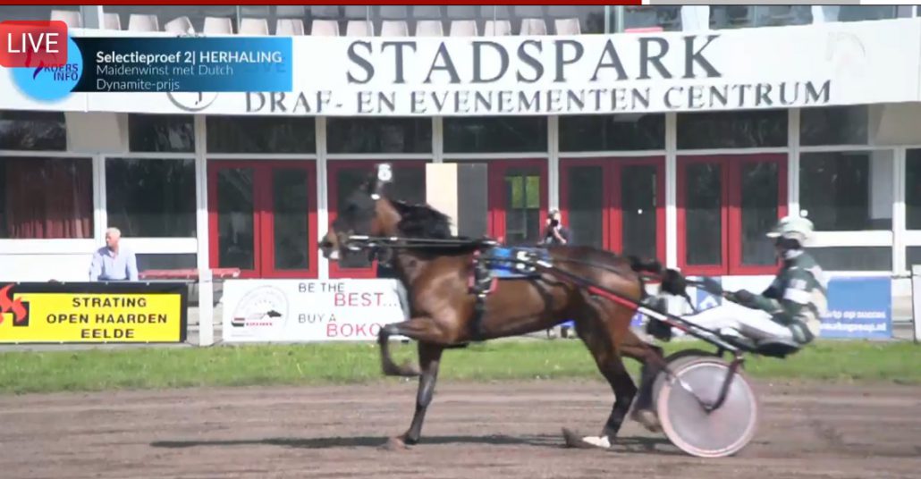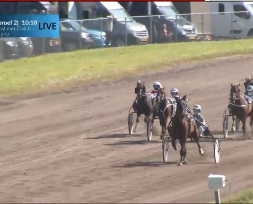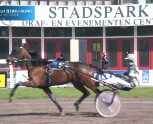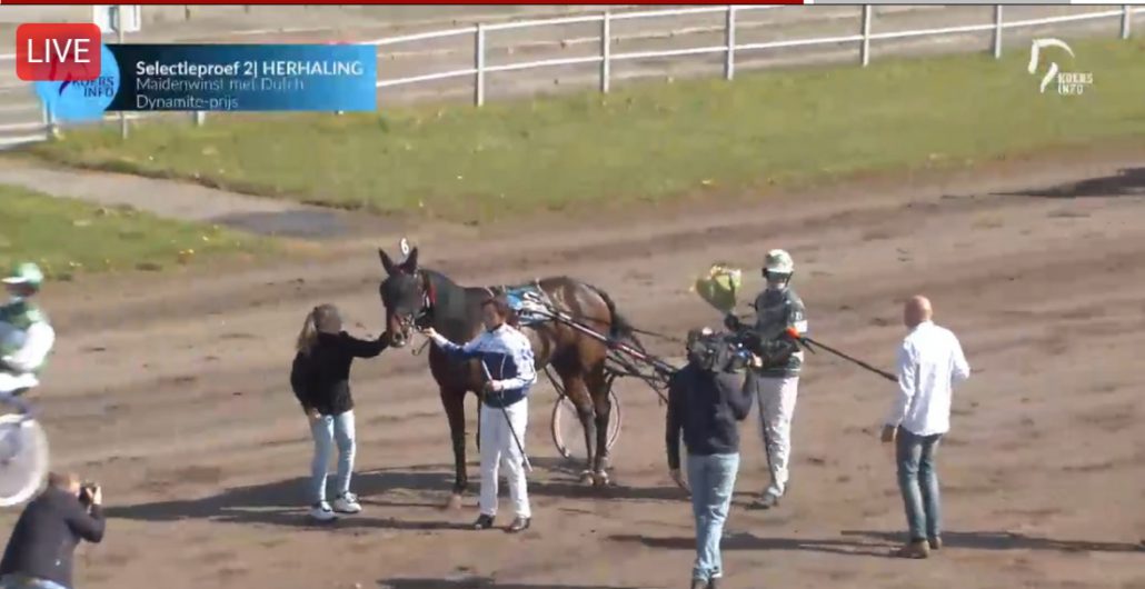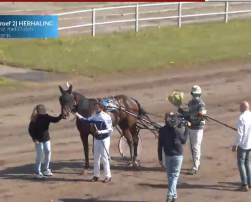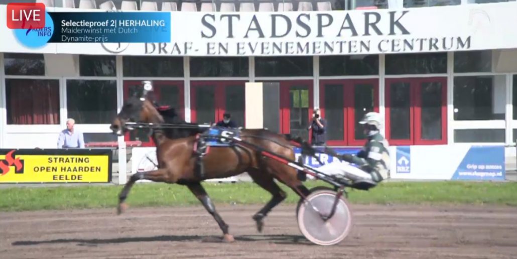 Kiss Flevo Rhythm wint de Meadenwinst met Dutch Dynamite Prijs in 1.20.6 over 2.300 meter met Micha Brouwer.