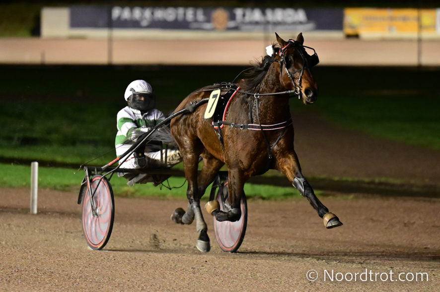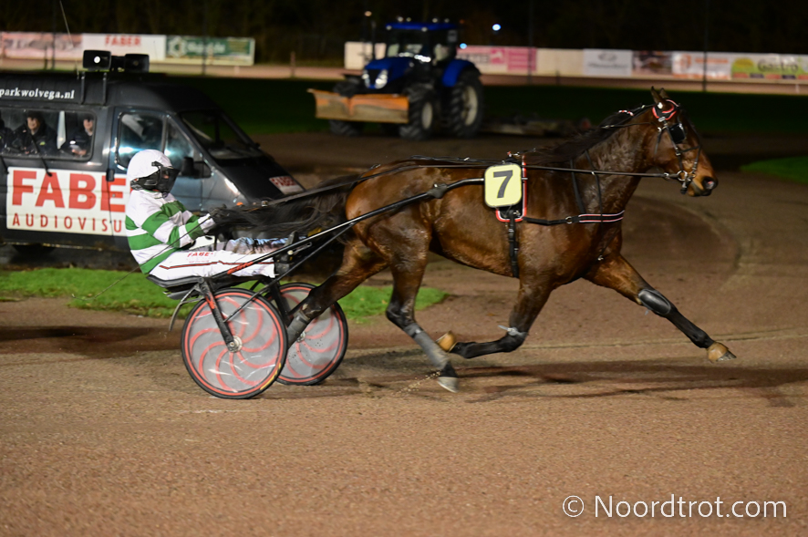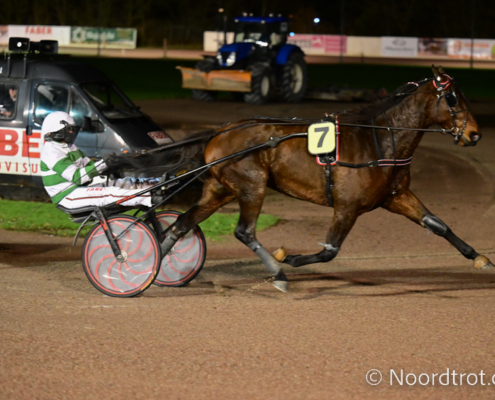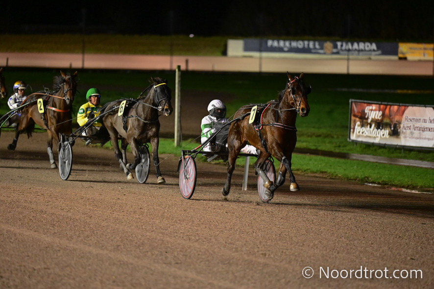 Wolvega, 7 december 2024 Krak D’Azur wint de Preix It’s A Dollarmaker in 1.15.2 over 2.600 meter met Kim Hagoort.