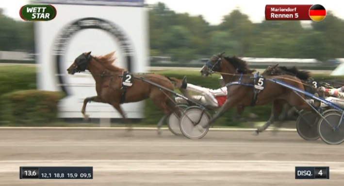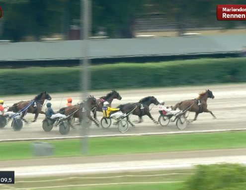 Berlijn, 22 augustus 2021 Lorens Flevo wint de Dallmayr – Trophy 126. Deutsches Traber-Derby in 1.14.2 over 1.900 meter met Robin Bakker.