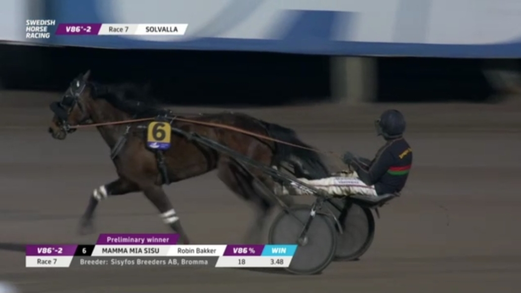 Solvalla, 23 april 2025 Mama Mia Sisu wint de Vårfavoriten Ston in 1.14.9 over 2.140 meter met Robin Bakker.