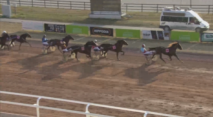 Mons, 24 juli 2019 Maya Turbo wint de Prix Darby 3-Ans (serie) in 1.14.5 over 2.300 meter met Robin Bakker.