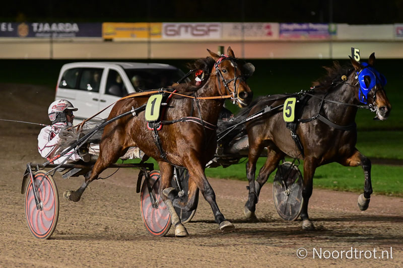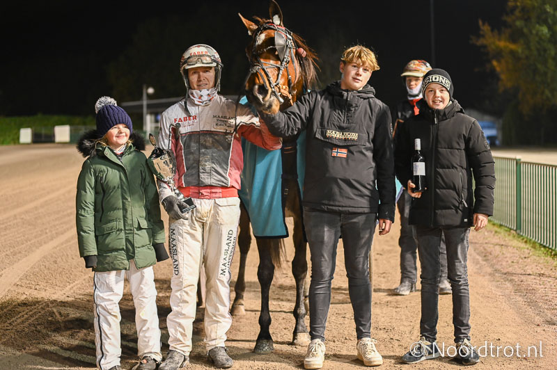 Wolvega, 18 november 2022 Mona Moonlight wint de Schotte Vastgoed TCT Wolvega Cup in 1.16.0 over 2.100 meter met Robin Bakker.