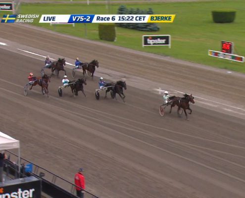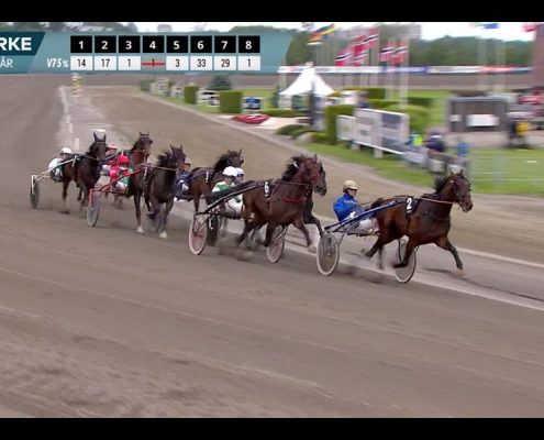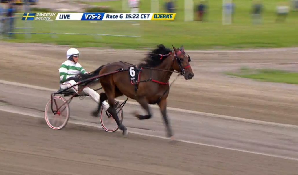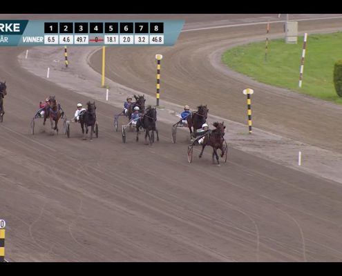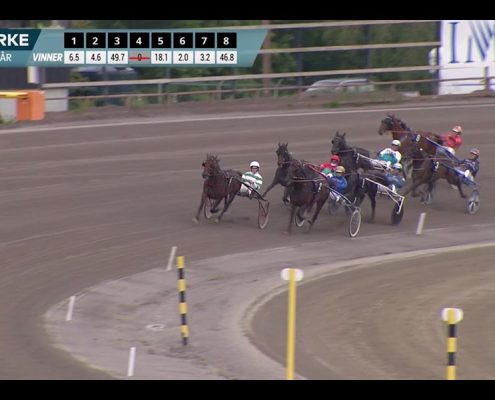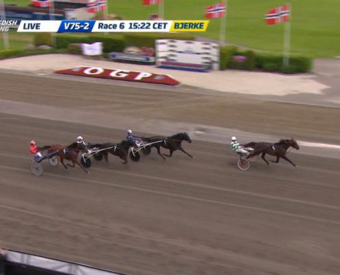 Bjerke, 9 juni 2019 Mr.F.Daag wint de GJENSIDIGE 4-ÅRINGSELITE in 1.10.9 over 1.609 meter met Robin Bakker.