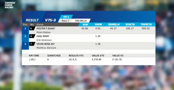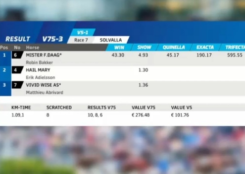 Solvalla, 29 mei 2022 Mr.F.Daag wint de serie van de Elitloppet 2022 in 1.09.1 over 1.609 meter met Robin Bakker. In de finale van de Elitloppet wordt Mt.F.Daag 3e