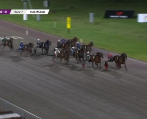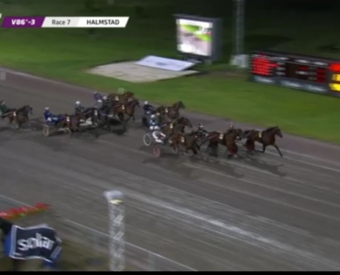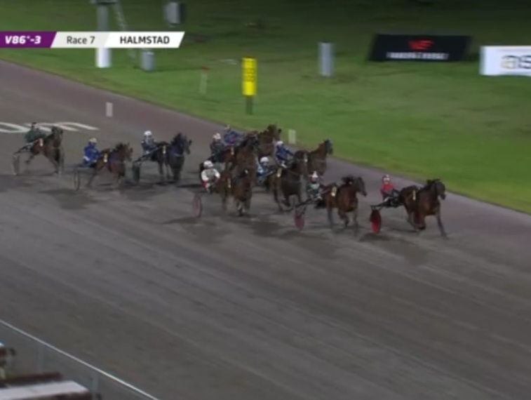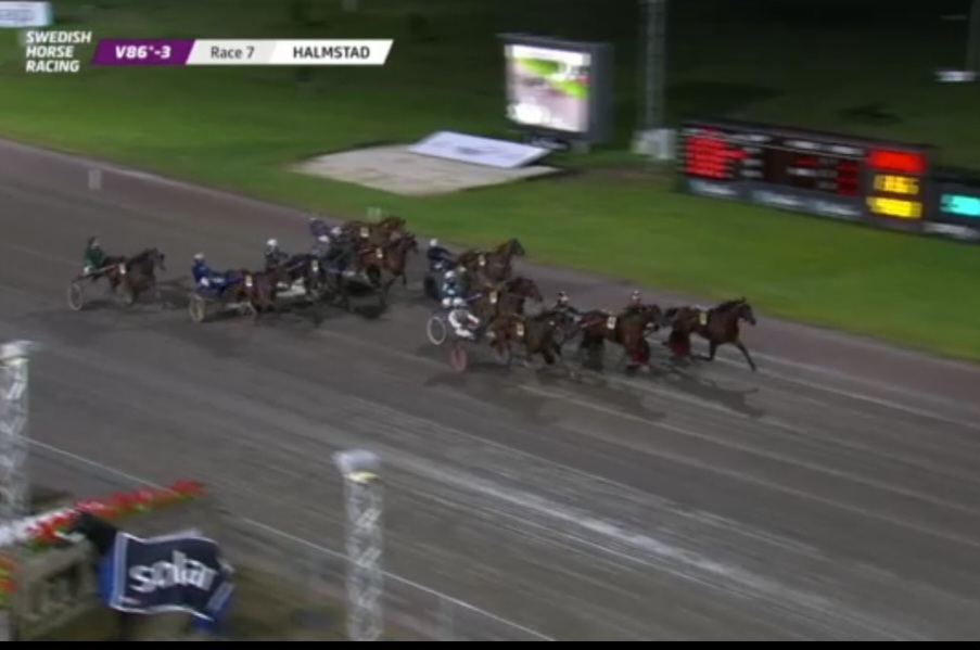 Halmstad, 11 september 2024 Mud Hill wint de Solar in 1.12.9 over 2.140 meter met Robin Bakker.