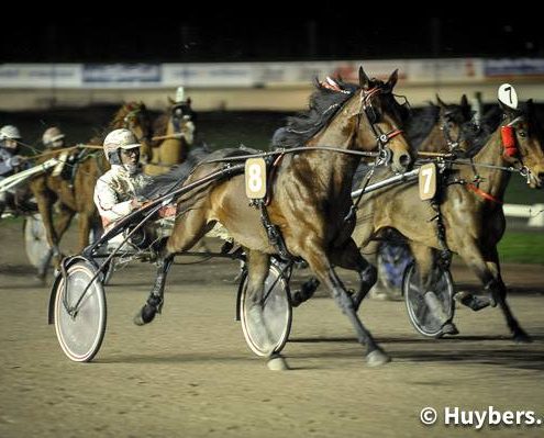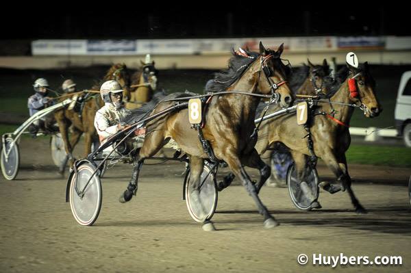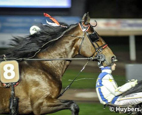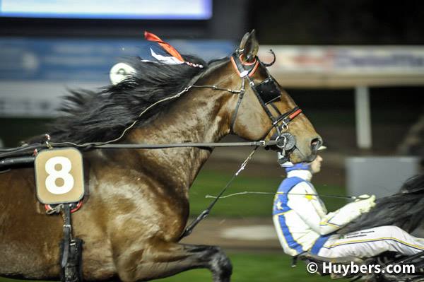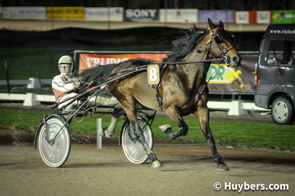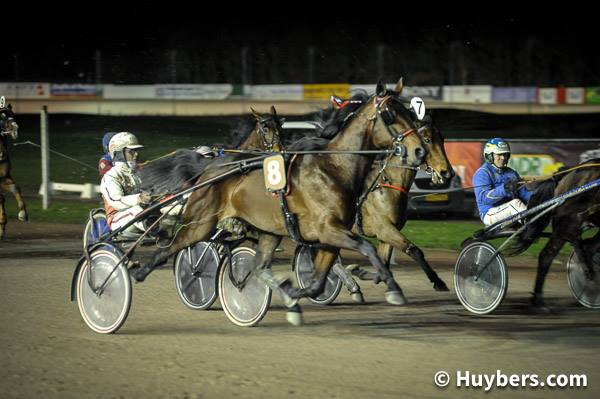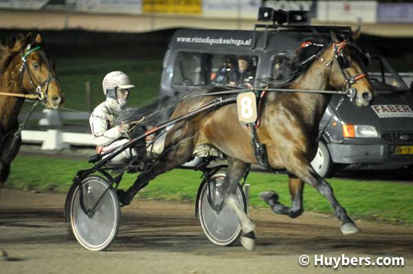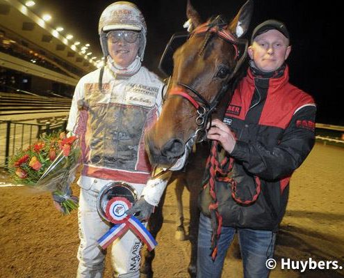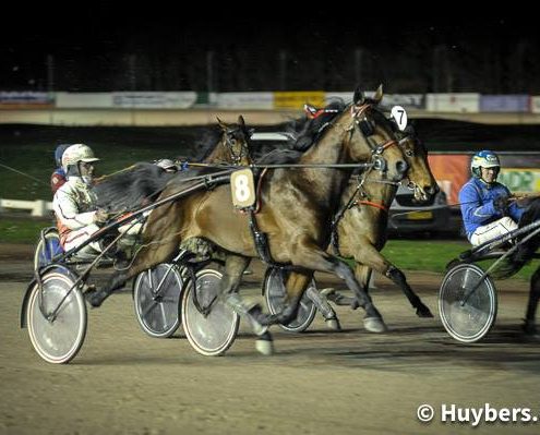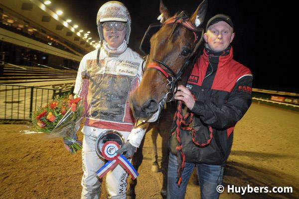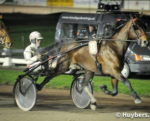 Wolvega, 2 februari 2018 Muscle Scott wint de Prix Coen Baas in 1.15.0 over 2.100 meter met Robin Bakker.