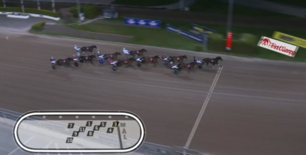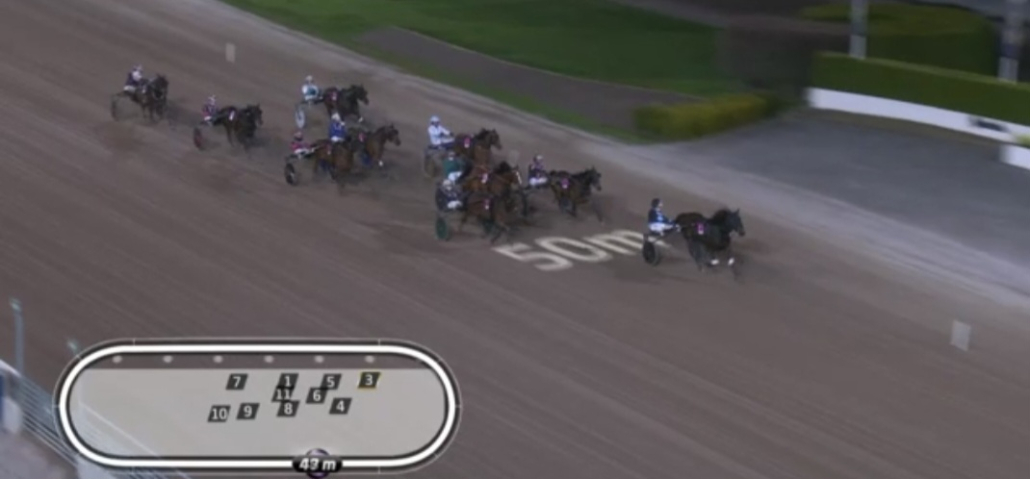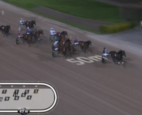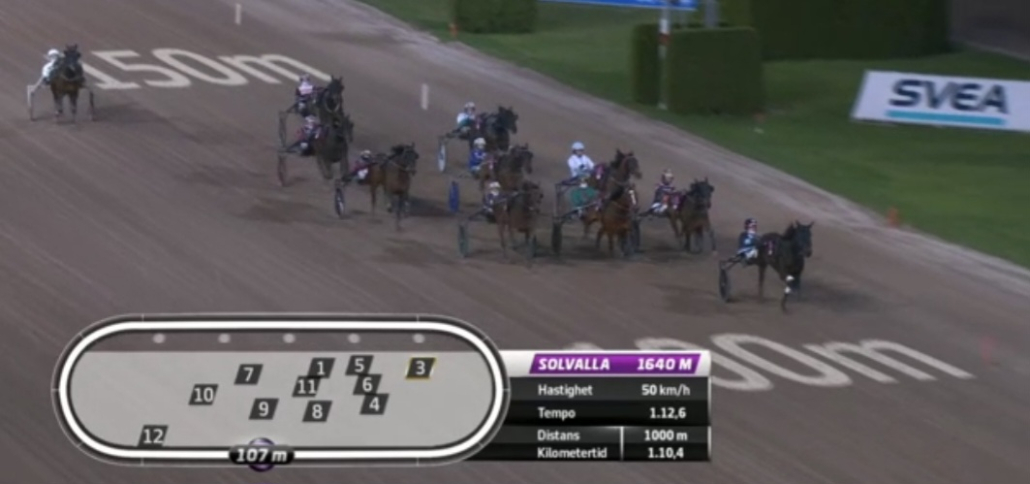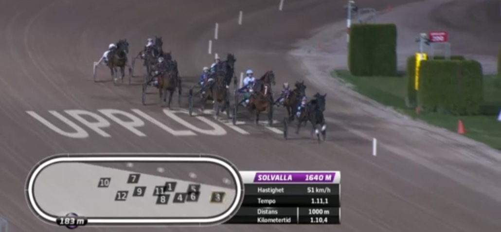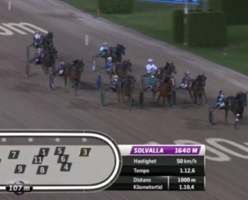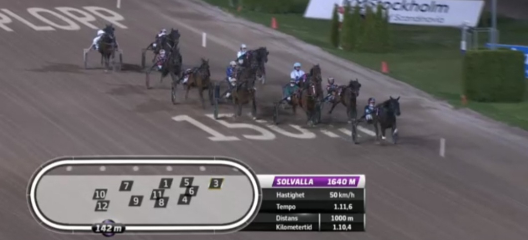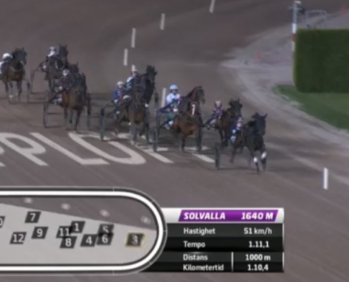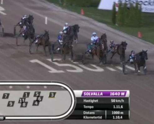 Solvalla, 22 april 2026 Muzan Kibutsuji wint de Stall Courant Solvallaserien 720 – Fördel Ston in 1.10.9 over 1.640 meter met Robin Bakker.