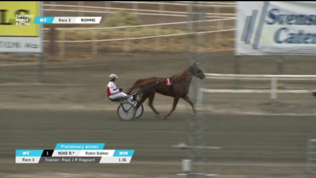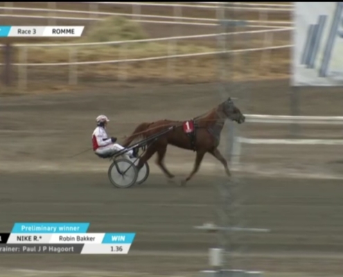 Romme, 7 april 2025 Nike R wint in Romme in 1.15.7 over 2.140 meter met Robin Bakker.