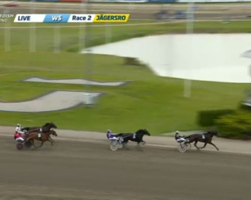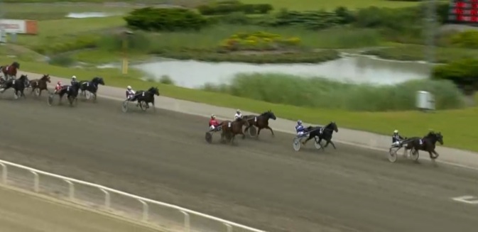 Jagersro, 14 juli 2020 Noxx Vrijthout wint in 1.15.8 over 2.140 meter met Rick Ebbinge.