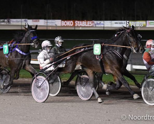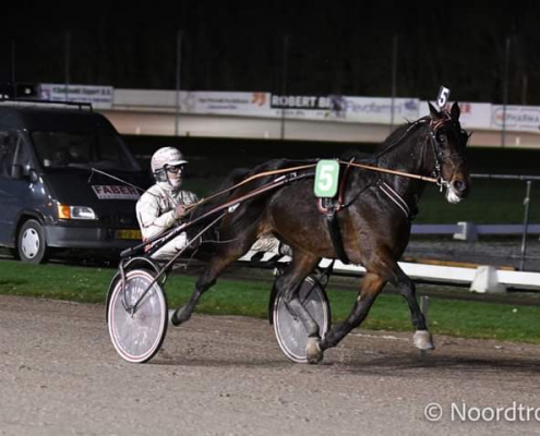 Wolvega, 21 januari 2022 Noxx Vrijthout wint de Prix de Mons in 1.15.3 over 2.100 meter met Robin Bakker.