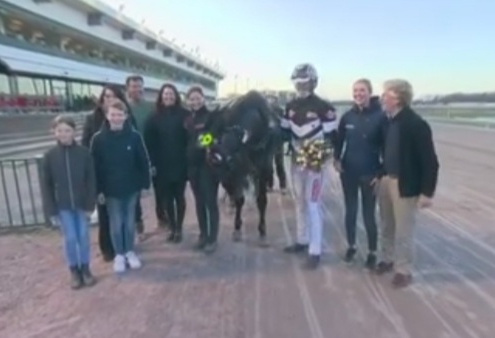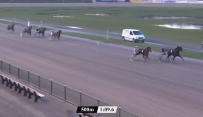 Noxx Vrijthout wint de Prix Parkhotel Tjaarda in 1.13.4 over 2.100  meter met Micha Brouwer.