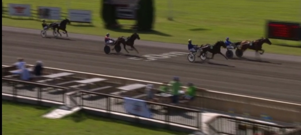 Lindesberg, 16 augustus 2024 O’Gene Bros wint de Treåringslopp Ston in 1.15.4 over 2.140 meter met Robin Bakker.