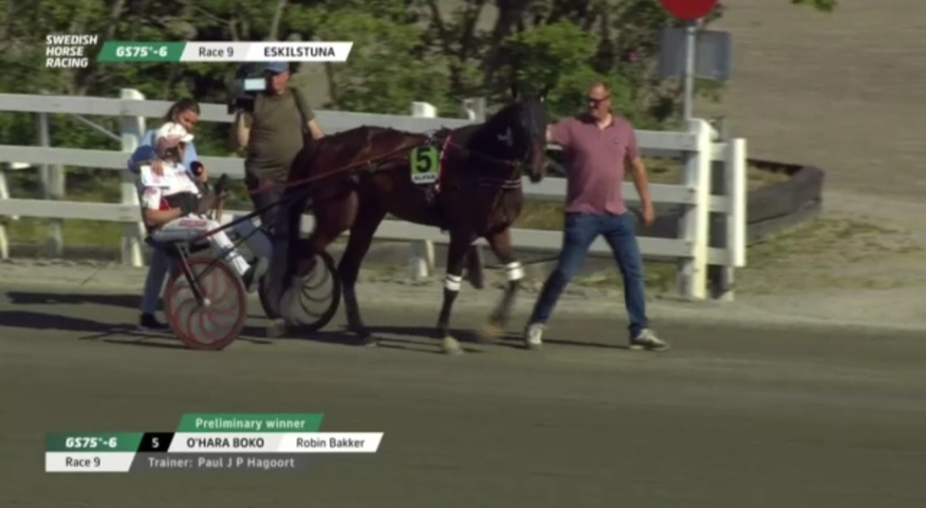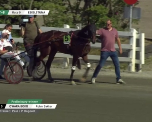 Eskilstuna, 16 juni 2024 O’Hara Boko wint de E3 Uttagningslopp in 1.13.4 over 2.140 meter met Robin Bakker.