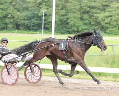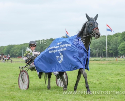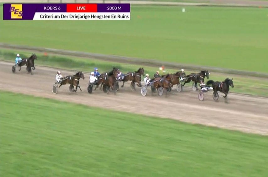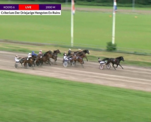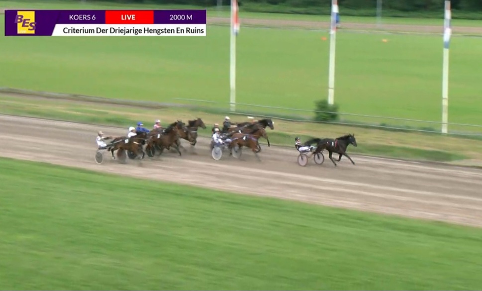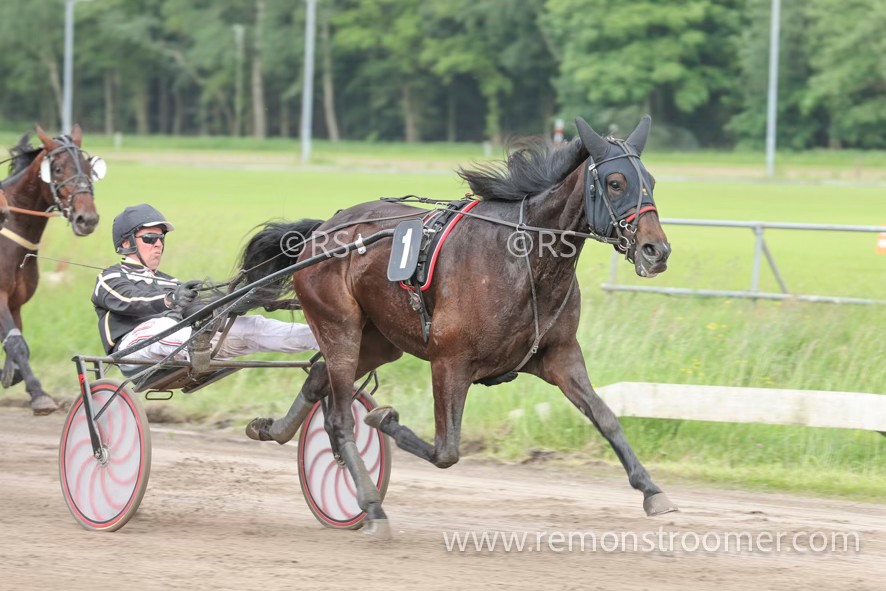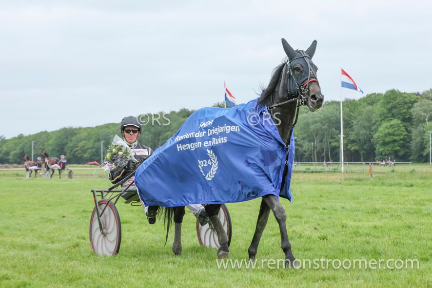 Duindigt, 2 juni 2024 Orvill Stone wint het Criterium der Driejarige Hengsten&Ruins in 1.17.3 over 2.000 meter met Robin Bakker.